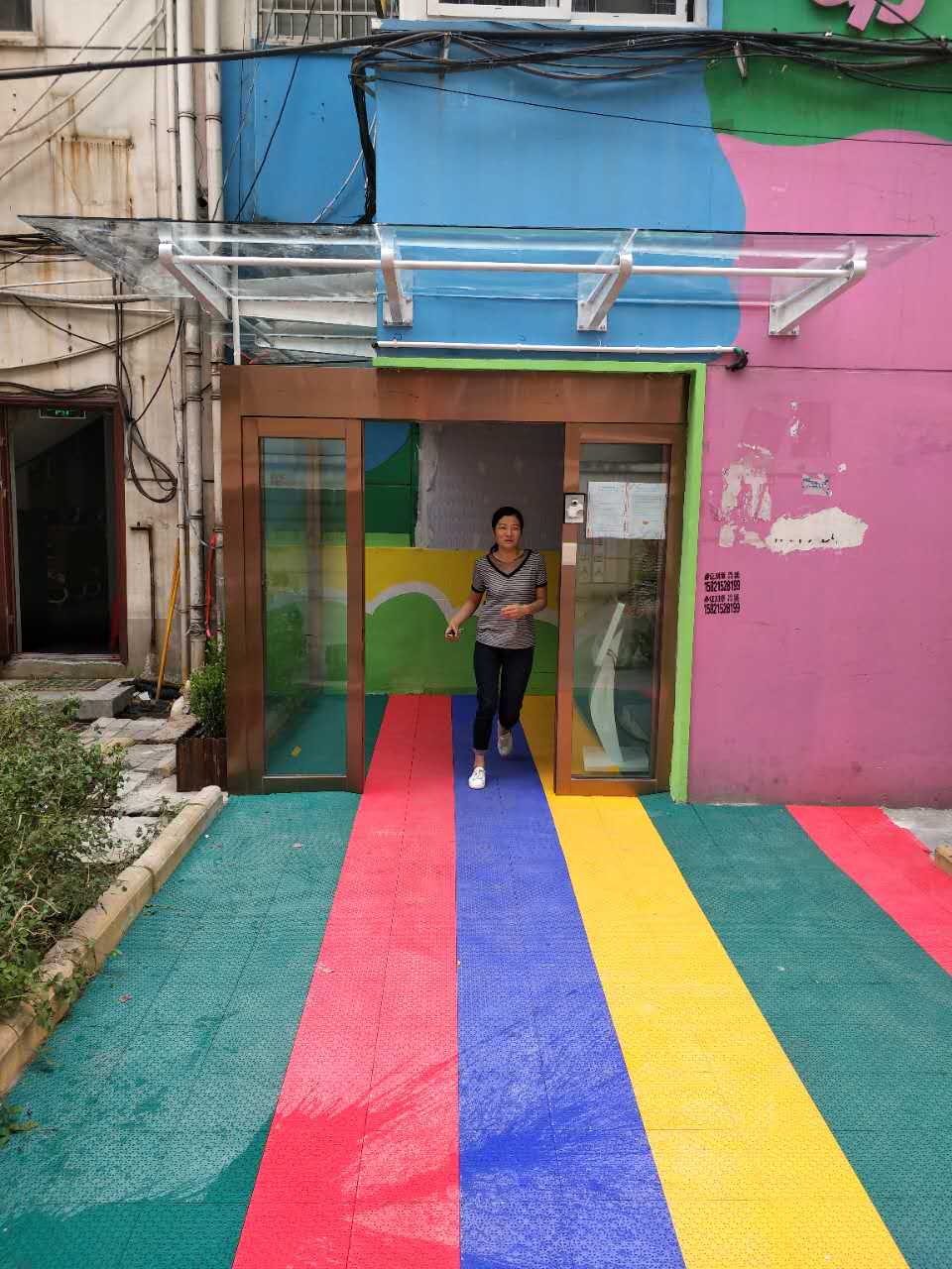 体彩广场金博士幼儿园刷卡感应门,玻璃雨棚