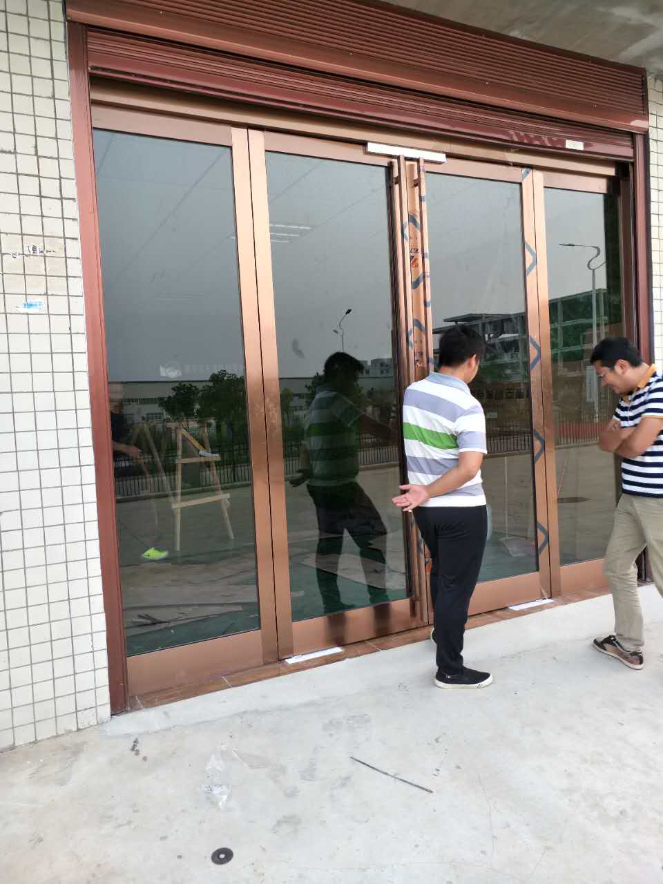 刷卡有框玻璃门_工程案例_河南信阳东方自动门有限公司